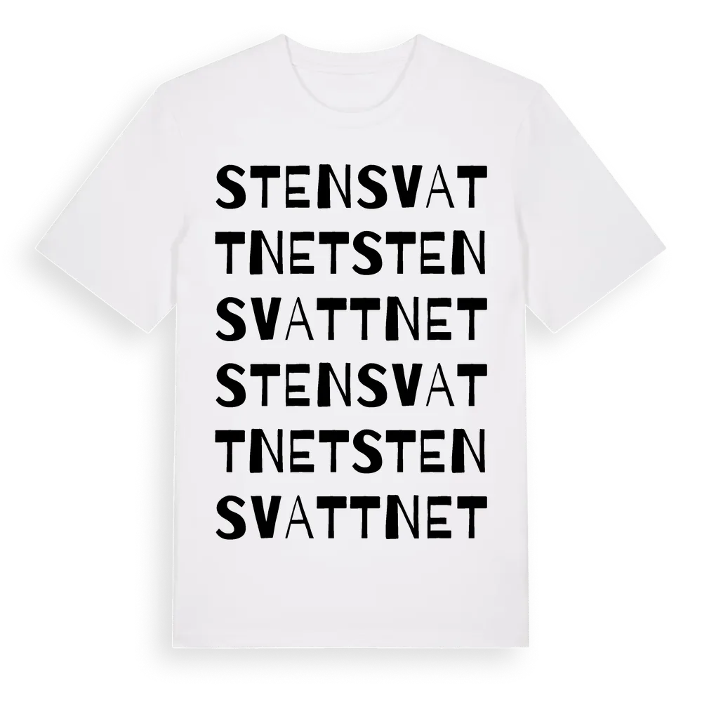Stensvattnet ordlek t-shirt är inspirerad av byn Stensvattnet i Västerbottens län, Sverige. Tröjan är designad för dig som har en speciell koppling till platsen – oavsett om du bor här, har rötterna här eller bara älskar Stensvattnet.