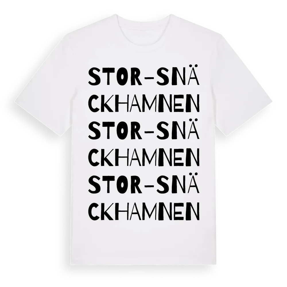 Stor-Snäckhamnen ordlek t-shirt är inspirerad av byn Stor-Snäckhamnen i Västerbottens län, Sverige. Tröjan är designad för dig som har en speciell koppling till platsen – oavsett om du bor här, har rötterna här eller bara älskar Stor-Snäckhamnen.