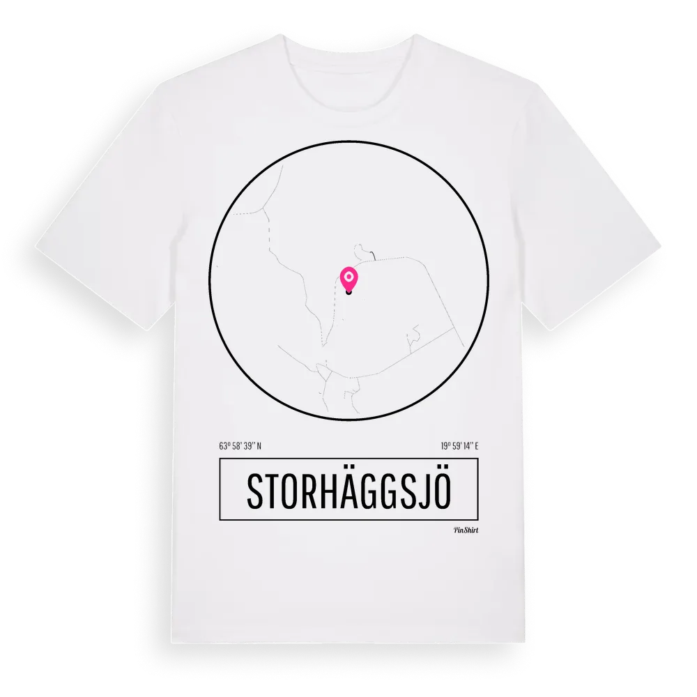 Storhäggsjö t-shirt är inspirerad av byn Storhäggsjö i Västerbottens län, Sverige. Tröjan är designad för dig som har en speciell koppling till platsen – oavsett om du bor här, har rötterna här eller bara älskar Storhäggsjö.