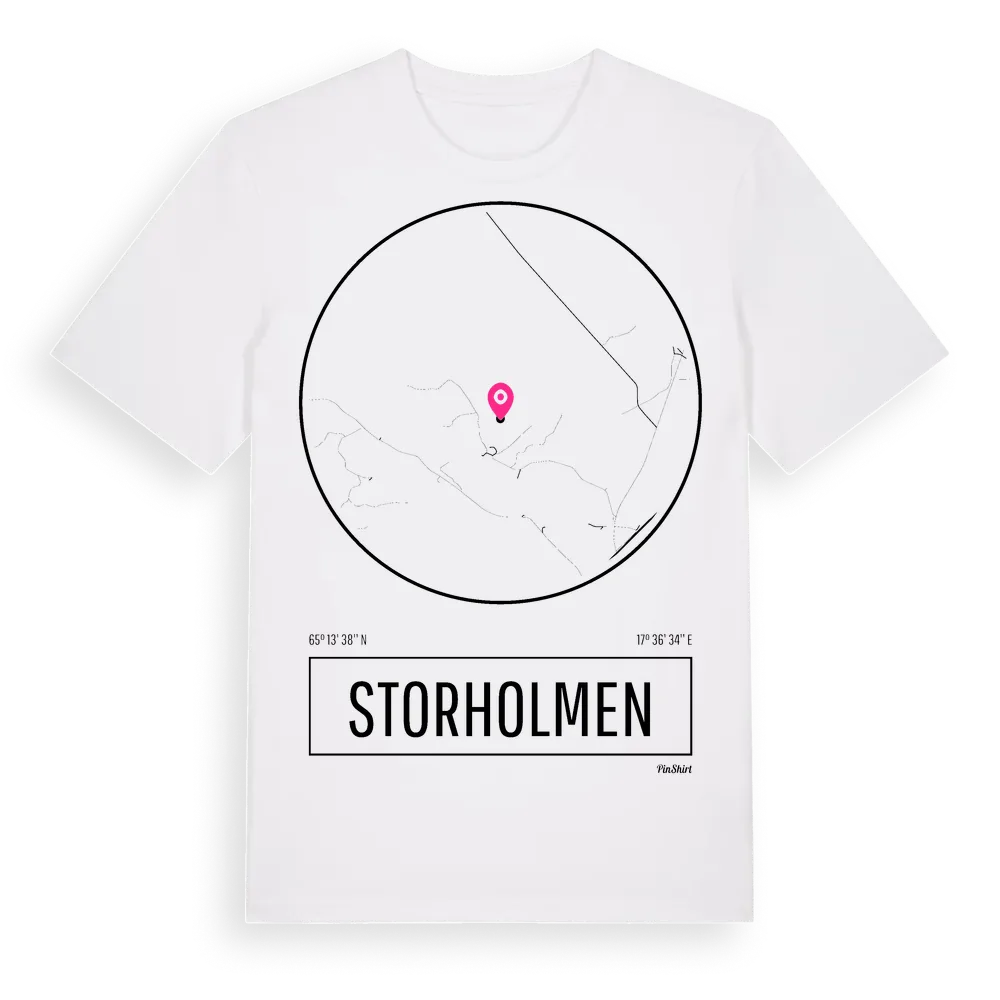 Storholmen t-shirt är inspirerad av ön Storholmen i Västerbottens län, Sverige. Tröjan är designad för dig som har en speciell koppling till platsen – oavsett om du bor här, har rötterna här eller bara älskar Storholmen.