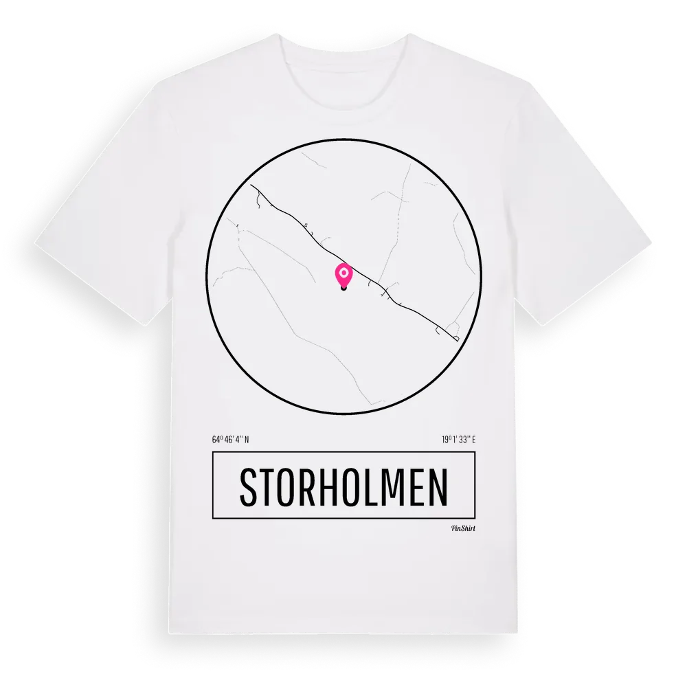 Storholmen t-shirt är inspirerad av ön Storholmen i Västerbottens län, Sverige. Tröjan är designad för dig som har en speciell koppling till platsen – oavsett om du bor här, har rötterna här eller bara älskar Storholmen.