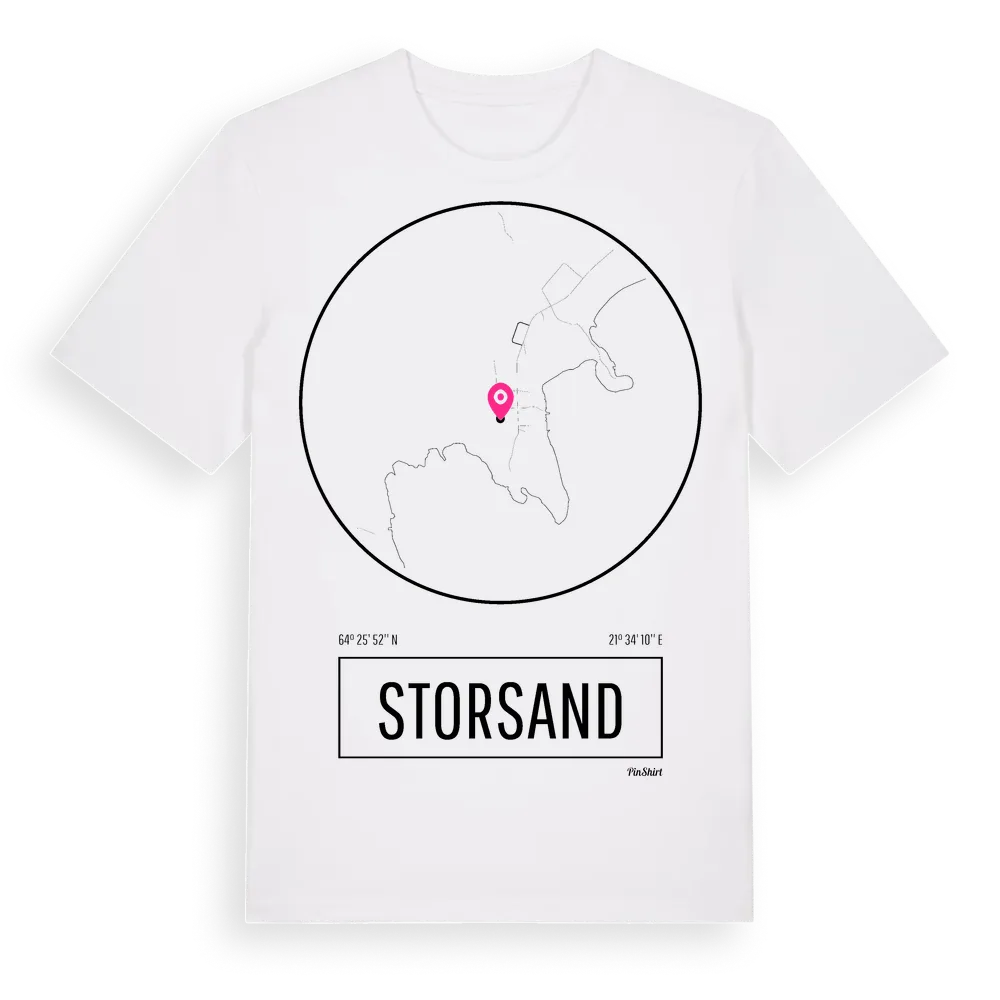 Storsand t-shirt är inspirerad av byn Storsand i Västerbottens län, Sverige. Tröjan är designad för dig som har en speciell koppling till platsen – oavsett om du bor här, har rötterna här eller bara älskar Storsand.