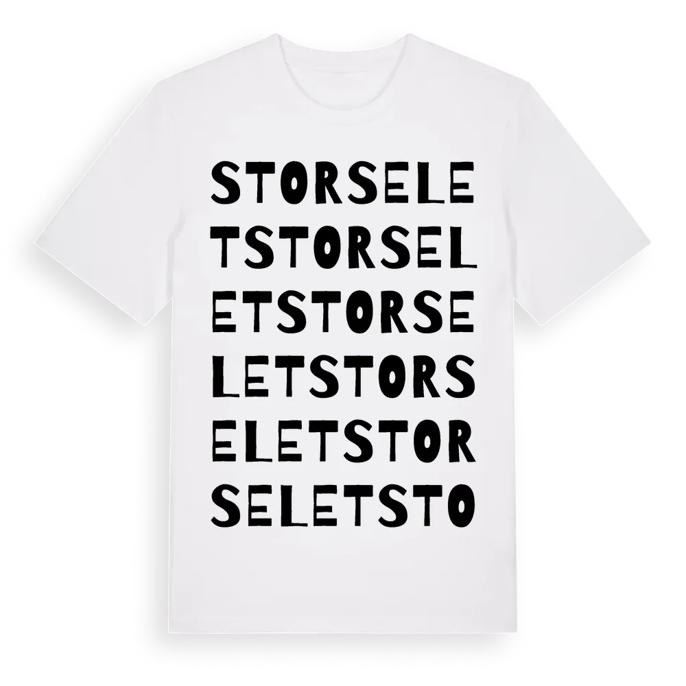 Storselet ordlek t-shirt är inspirerad av byn Storselet i Västerbottens län, Sverige. Tröjan är designad för dig som har en speciell koppling till platsen – oavsett om du bor här, har rötterna här eller bara älskar Storselet.