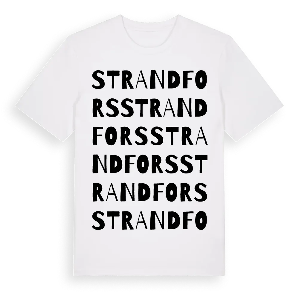 Strandfors ordlek t-shirt är inspirerad av byn Strandfors i Västerbottens län, Sverige. Tröjan är designad för dig som har en speciell koppling till platsen – oavsett om du bor här, har rötterna här eller bara älskar Strandfors.