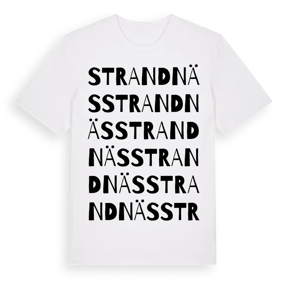 Strandnäs ordlek t-shirt är inspirerad av Strandnäs i Västerbottens län, Sverige. Tröjan är designad för dig som har en speciell koppling till platsen – oavsett om du bor här, har rötterna här eller bara älskar Strandnäs.