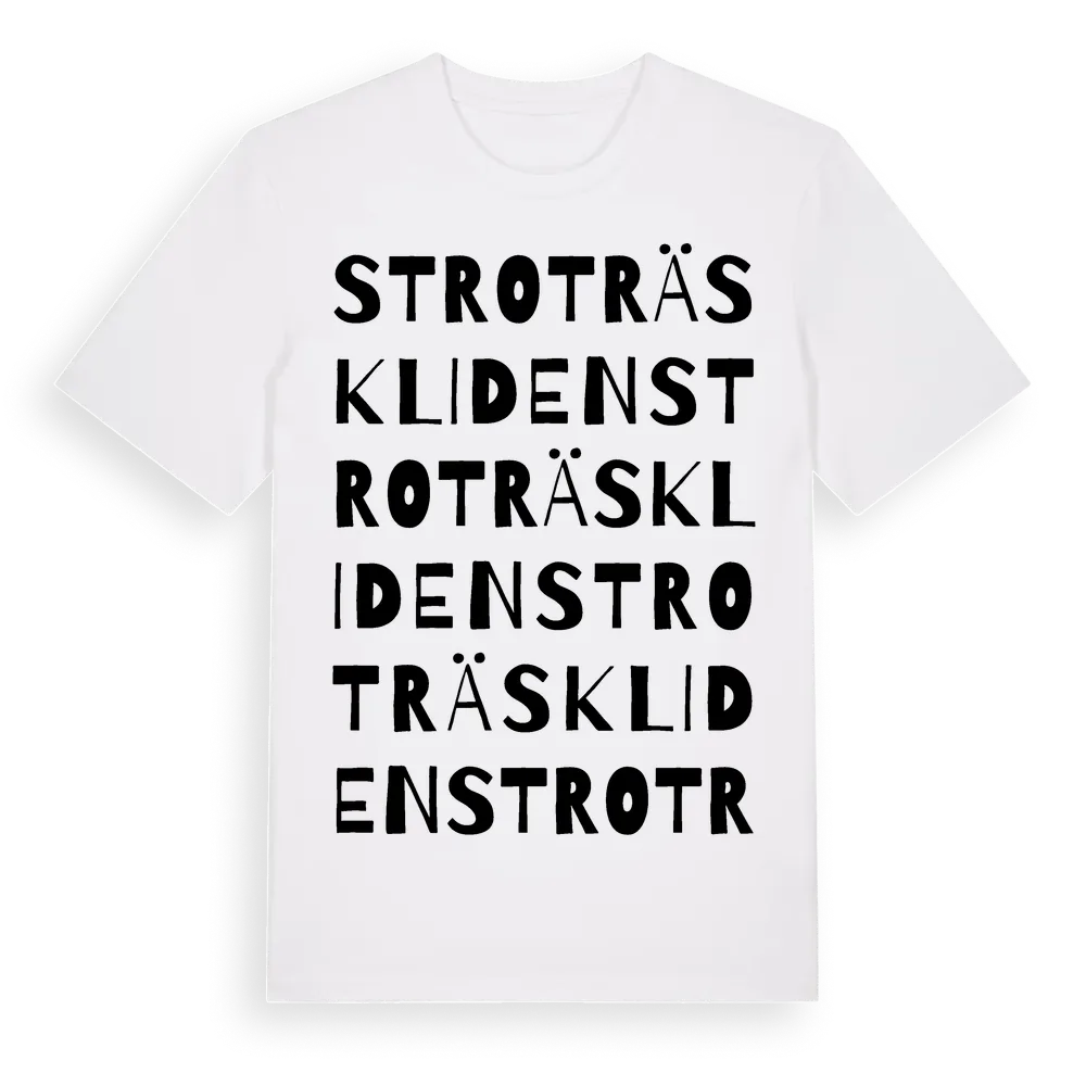 Stroträskliden ordlek t-shirt är inspirerad av Stroträskliden i Västerbottens län, Sverige. Tröjan är designad för dig som har en speciell koppling till platsen – oavsett om du bor här, har rötterna här eller bara älskar Stroträskliden.