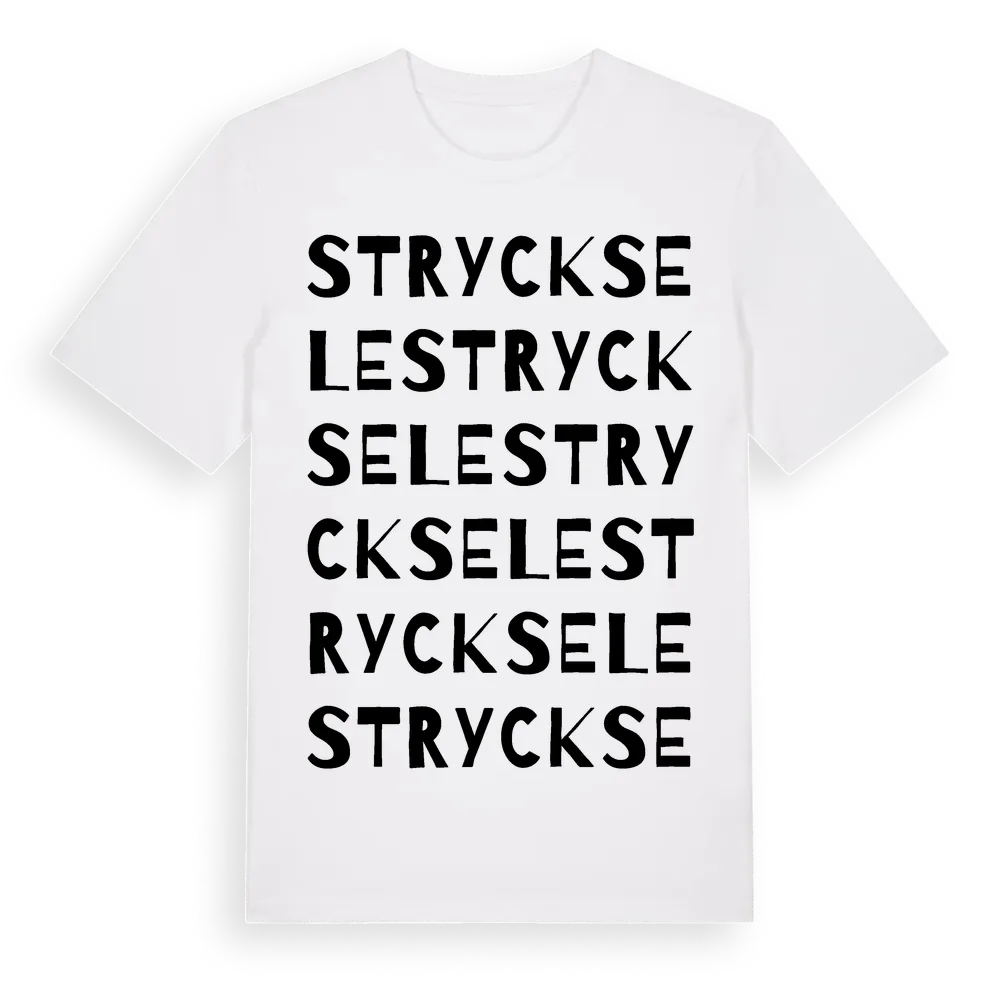 Strycksele ordlek t-shirt är inspirerad av byn Strycksele i Västerbottens län, Sverige. Tröjan är designad för dig som har en speciell koppling till platsen – oavsett om du bor här, har rötterna här eller bara älskar Strycksele.