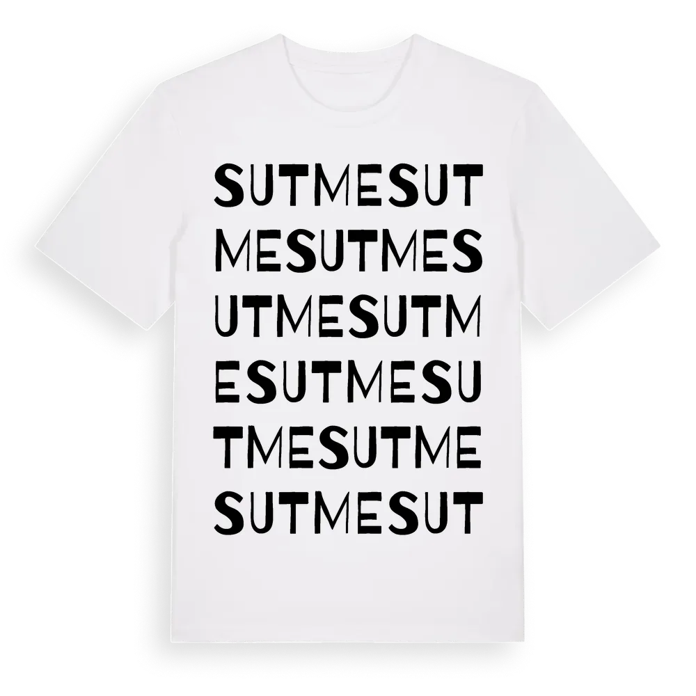 En ordlek byggd på Sutmes namn. Subtilt och klurig – ett motiv som bara de som verkligen känner platsen fullt ut förstår. Premium bomull, unisex – från Sutme i Västerbottens län.