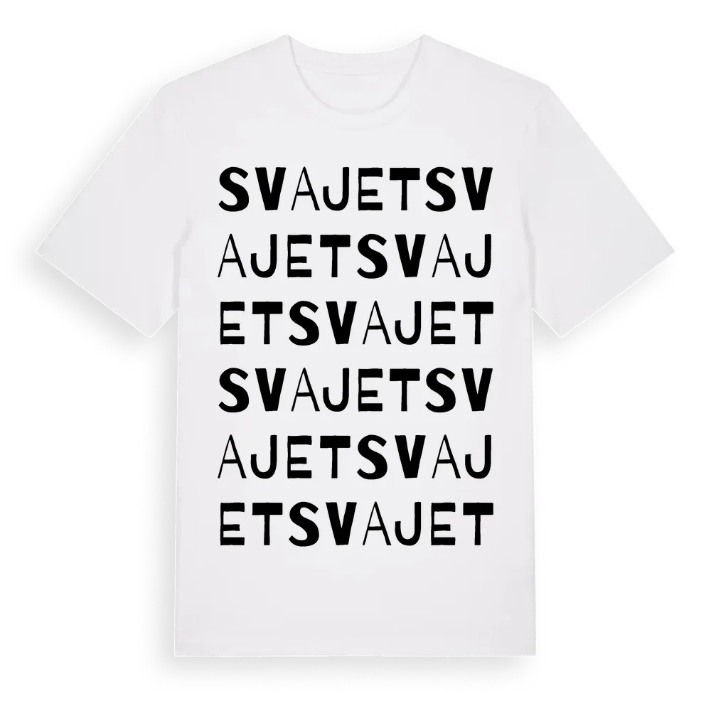 Svajet ordlek t-shirt är inspirerad av stadsdelen Svajet i Västerbottens län, Sverige. Tröjan är designad för dig som har en speciell koppling till platsen – oavsett om du bor här, har rötterna här eller bara älskar Svajet.