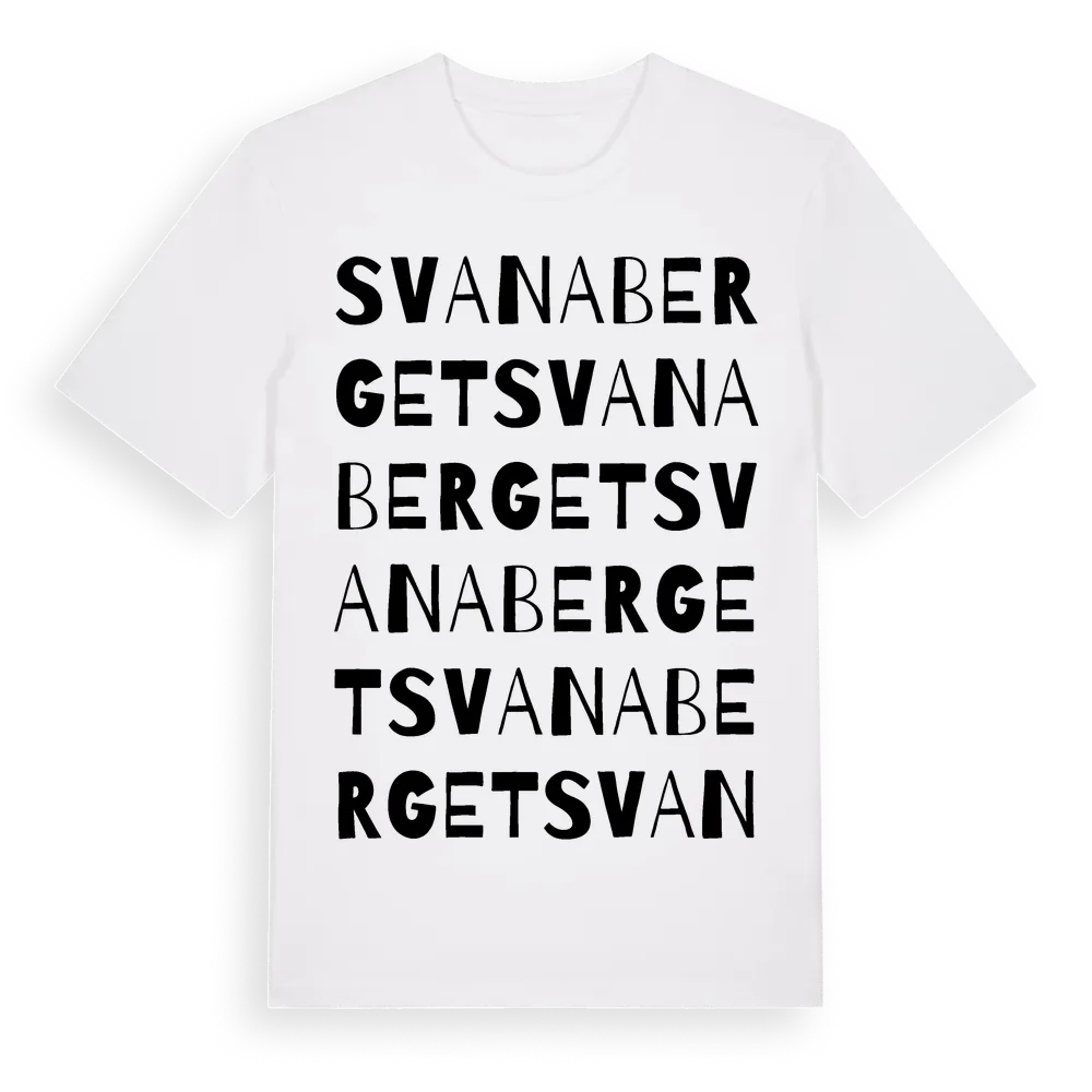 Svanaberget ordlek t-shirt är inspirerad av Svanaberget i Västerbottens län, Sverige. Tröjan är designad för dig som har en speciell koppling till platsen – oavsett om du bor här, har rötterna här eller bara älskar Svanaberget.