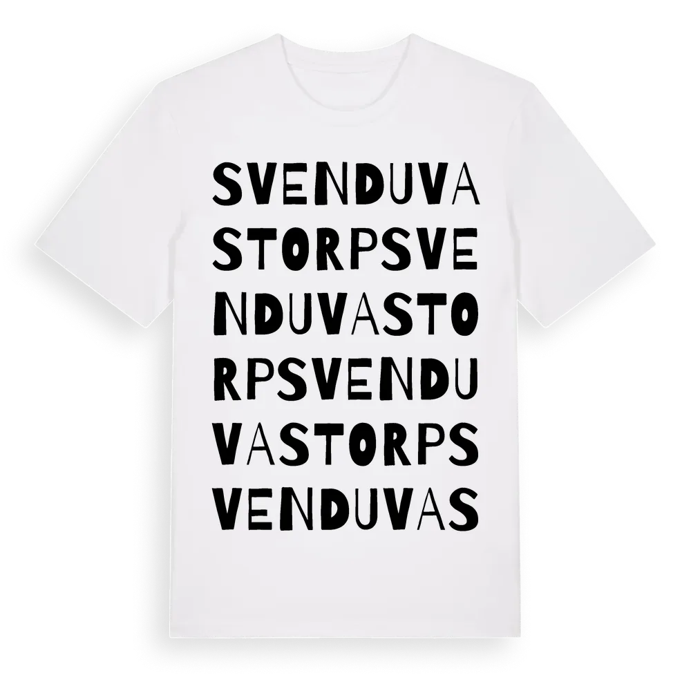 Sven Duvas Torp ordlek t-shirt är inspirerad av Sven Duvas Torp i Västerbottens län, Sverige. Tröjan är designad för dig som har en speciell koppling till platsen – oavsett om du bor här, har rötterna här eller bara älskar Sven Duvas Torp.