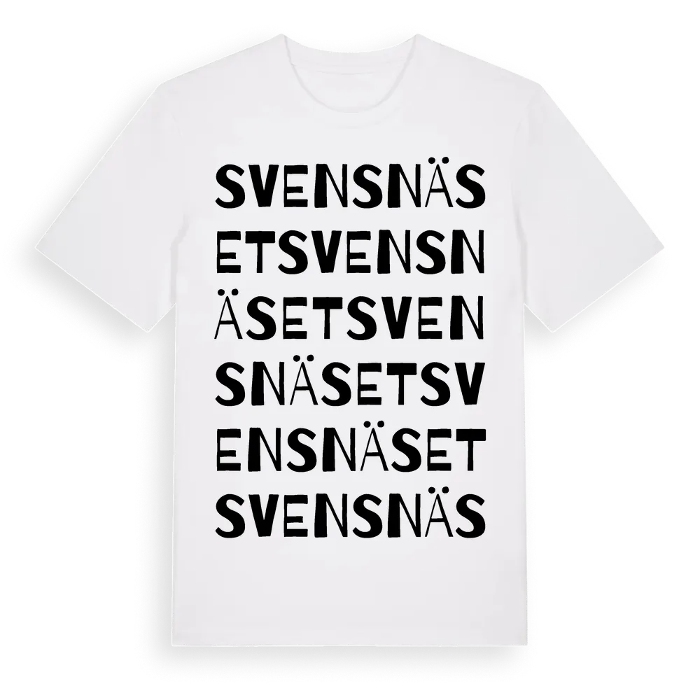 Svensnäset ordlek t-shirt är inspirerad av Svensnäset i Västerbottens län, Sverige. Tröjan är designad för dig som har en speciell koppling till platsen – oavsett om du bor här, har rötterna här eller bara älskar Svensnäset.