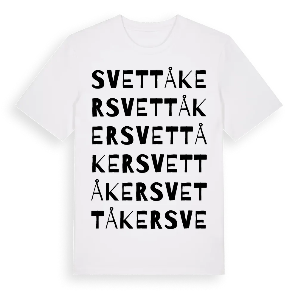 Svettåker ordlek t-shirt är inspirerad av byn Svettåker i Västerbottens län, Sverige. Tröjan är designad för dig som har en speciell koppling till platsen – oavsett om du bor här, har rötterna här eller bara älskar Svettåker.