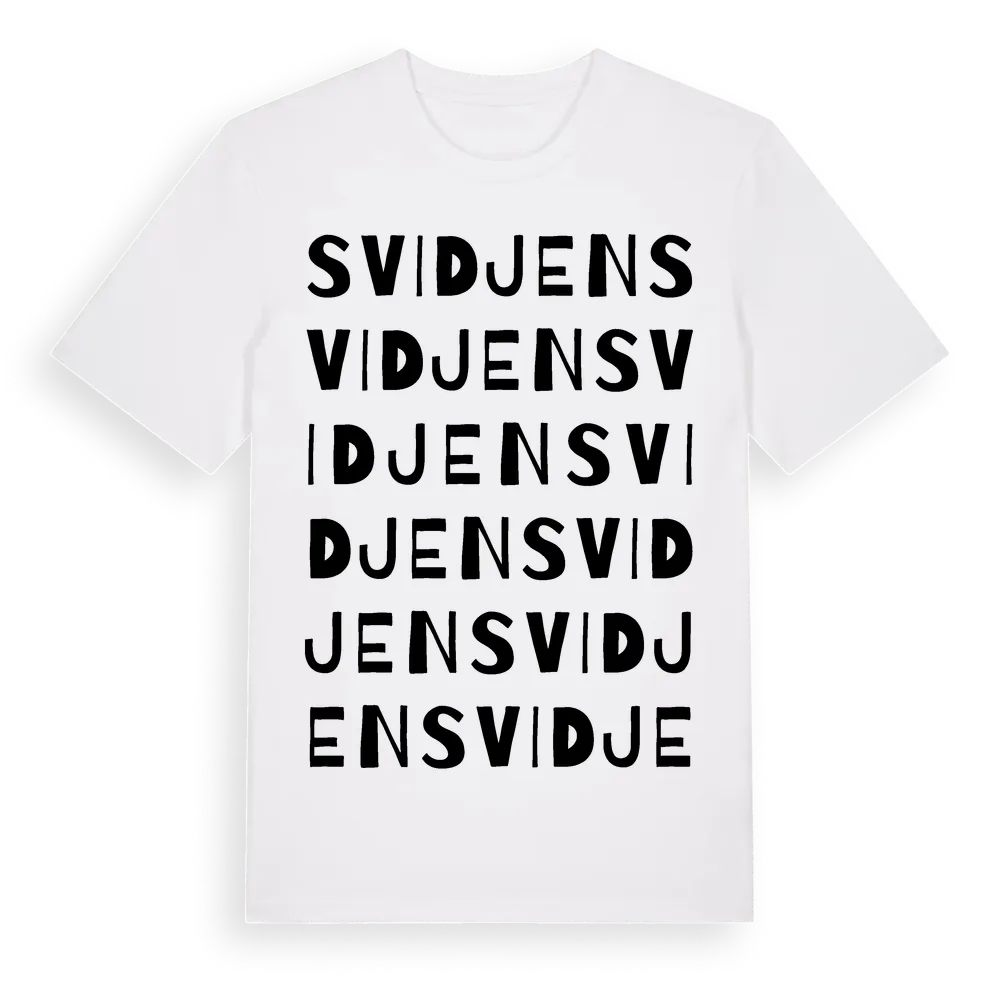 Svidjen ordlek t-shirt är inspirerad av Svidjen i Västerbottens län, Sverige. Tröjan är designad för dig som har en speciell koppling till platsen – oavsett om du bor här, har rötterna här eller bara älskar Svidjen.