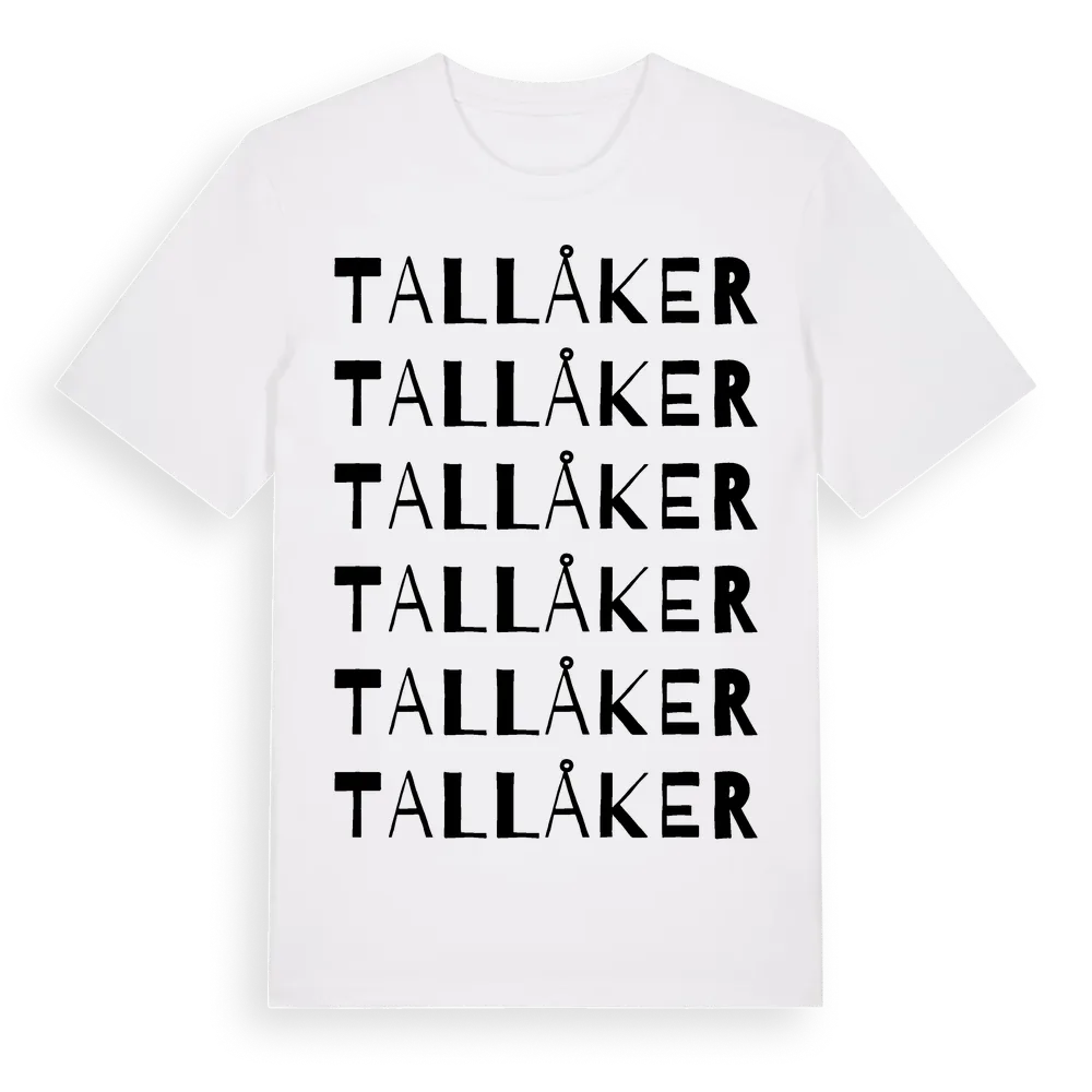 Tallåker ordlek t-shirt är inspirerad av Tallåker i Västerbottens län, Sverige. Tröjan är designad för dig som har en speciell koppling till platsen – oavsett om du bor här, har rötterna här eller bara älskar Tallåker.