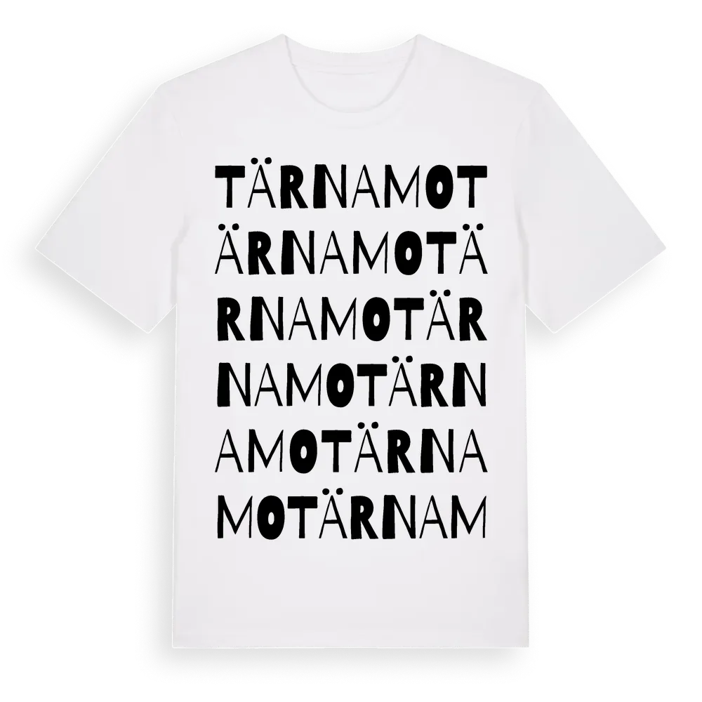 Tärnamo ordlek t-shirt är inspirerad av byn Tärnamo i Västerbottens län, Sverige. Tröjan är designad för dig som har en speciell koppling till platsen – oavsett om du bor här, har rötterna här eller bara älskar Tärnamo.