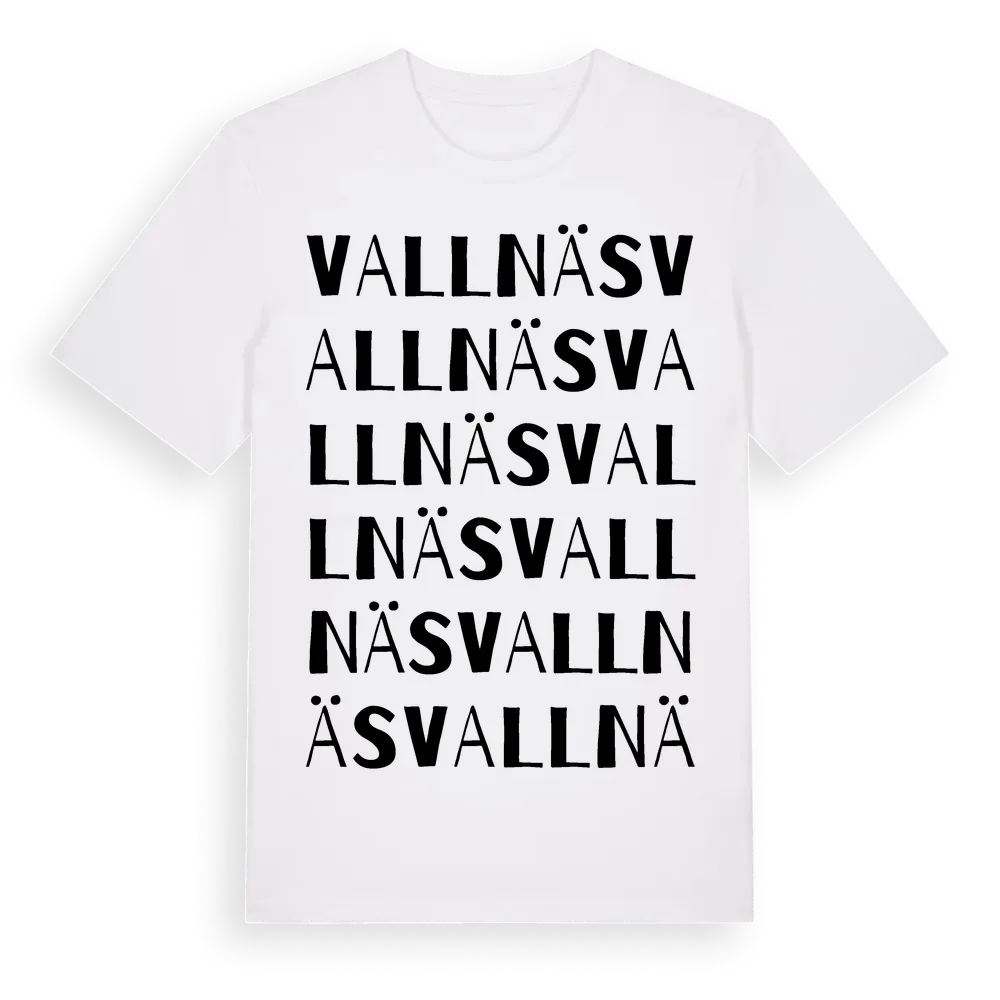 Vallnäs ordlek t-shirt är inspirerad av Vallnäs i Västerbottens län, Sverige. Tröjan är designad för dig som har en speciell koppling till platsen – oavsett om du bor här, har rötterna här eller bara älskar Vallnäs.