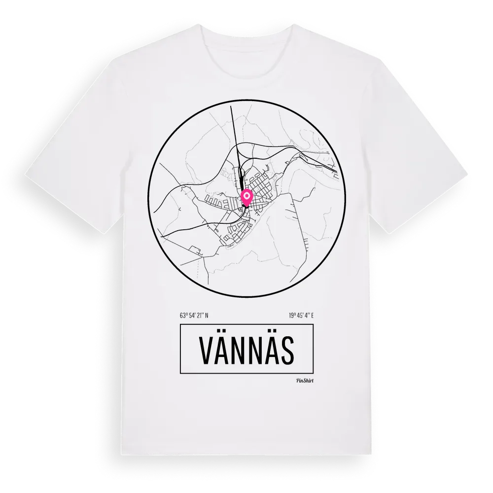 Vännäs t-shirt är inspirerad av staden Vännäs i Västerbottens län, Sverige. Tröjan är designad för dig som har en speciell koppling till platsen – oavsett om du bor här, har rötterna här eller bara älskar Vännäs.