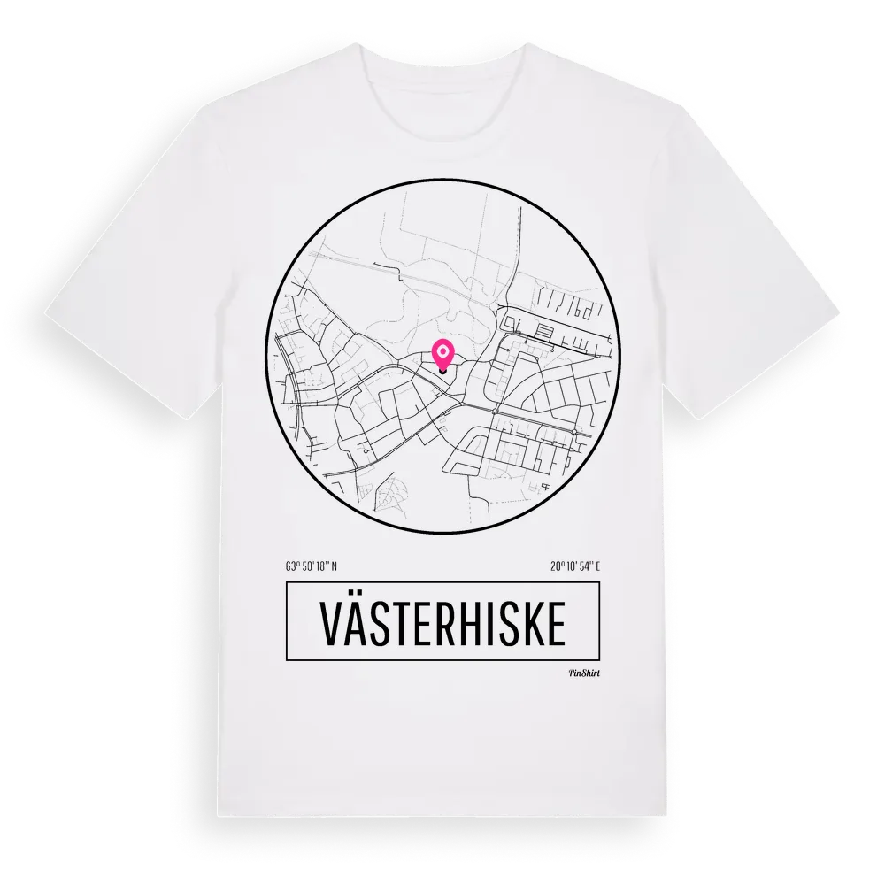 Västerhiske t-shirt är inspirerad av stadsdelen Västerhiske i Västerbottens län, Sverige. Tröjan är designad för dig som har en speciell koppling till platsen – oavsett om du bor här, har rötterna här eller bara älskar Västerhiske.