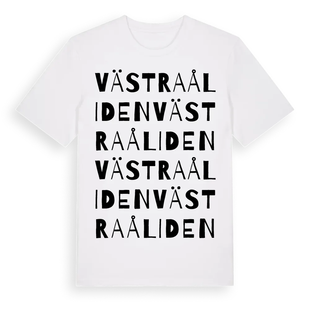 Västra Åliden ordlek t-shirt är inspirerad av byn Västra Åliden i Västerbottens län, Sverige. Tröjan är designad för dig som har en speciell koppling till platsen – oavsett om du bor här, har rötterna här eller bara älskar Västra Åliden.