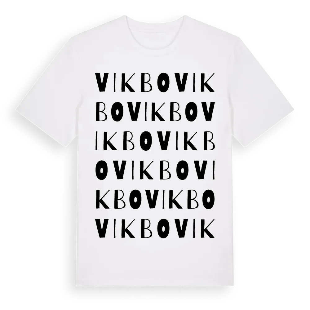 Vikbo ordlek t-shirt är inspirerad av Vikbo i Västerbottens län, Sverige. Tröjan är designad för dig som har en speciell koppling till platsen – oavsett om du bor här, har rötterna här eller bara älskar Vikbo.
