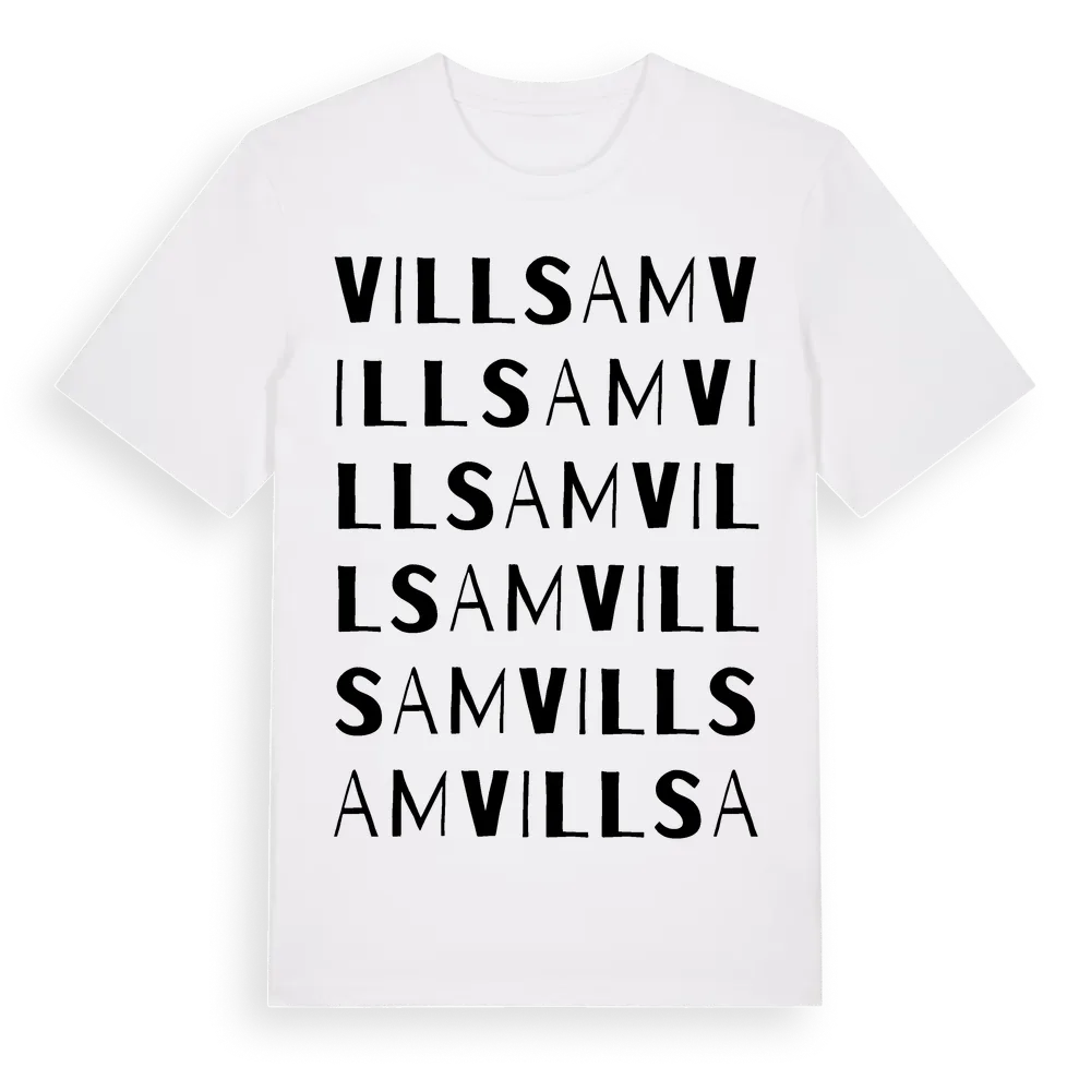 Villsam ordlek t-shirt är inspirerad av Villsam i Västerbottens län, Sverige. Tröjan är designad för dig som har en speciell koppling till platsen – oavsett om du bor här, har rötterna här eller bara älskar Villsam.