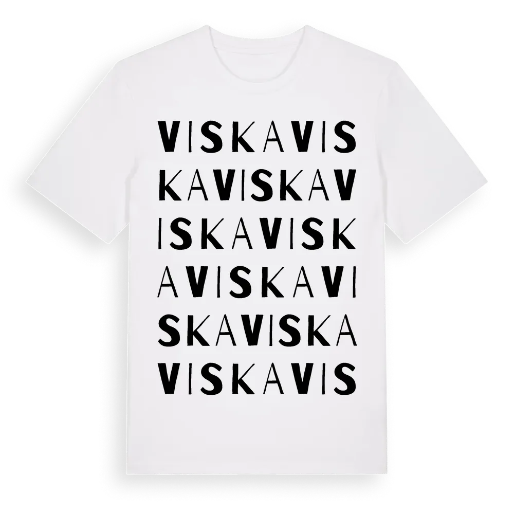 Viska ordlek t-shirt är inspirerad av byn Viska i Västerbottens län, Sverige. Tröjan är designad för dig som har en speciell koppling till platsen – oavsett om du bor här, har rötterna här eller bara älskar Viska.