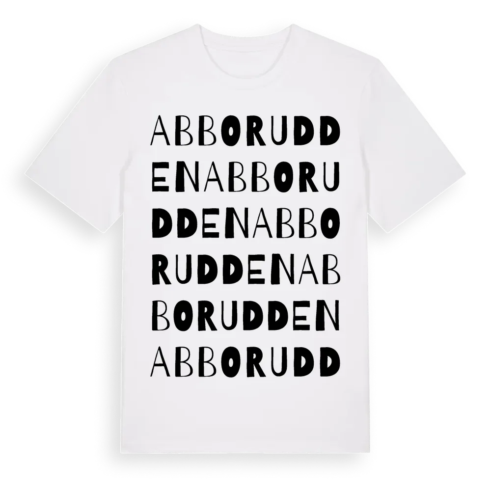 Abborudden ordlek t-shirt är inspirerad av Abborudden i Västernorrlands län, Sverige. Tröjan är designad för dig som har en speciell koppling till platsen – oavsett om du bor här, har rötterna här eller bara älskar Abborudden.