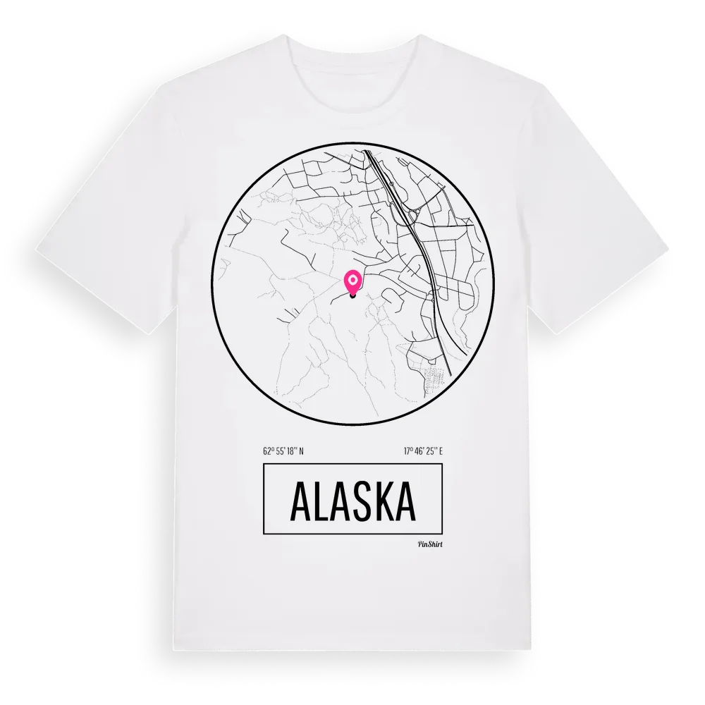 Alaska t-shirt är inspirerad av stadsdelen Alaska i Västernorrlands län, Sverige. Tröjan är designad för dig som har en speciell koppling till platsen – oavsett om du bor här, har rötterna här eller bara älskar Alaska.
