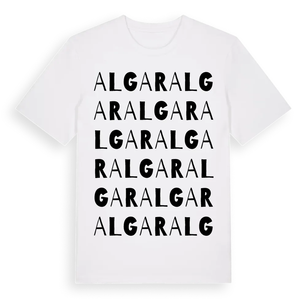 Algar ordlek t-shirt är inspirerad av byn Algar i Västernorrlands län, Sverige. Tröjan är designad för dig som har en speciell koppling till platsen – oavsett om du bor här, har rötterna här eller bara älskar Algar.