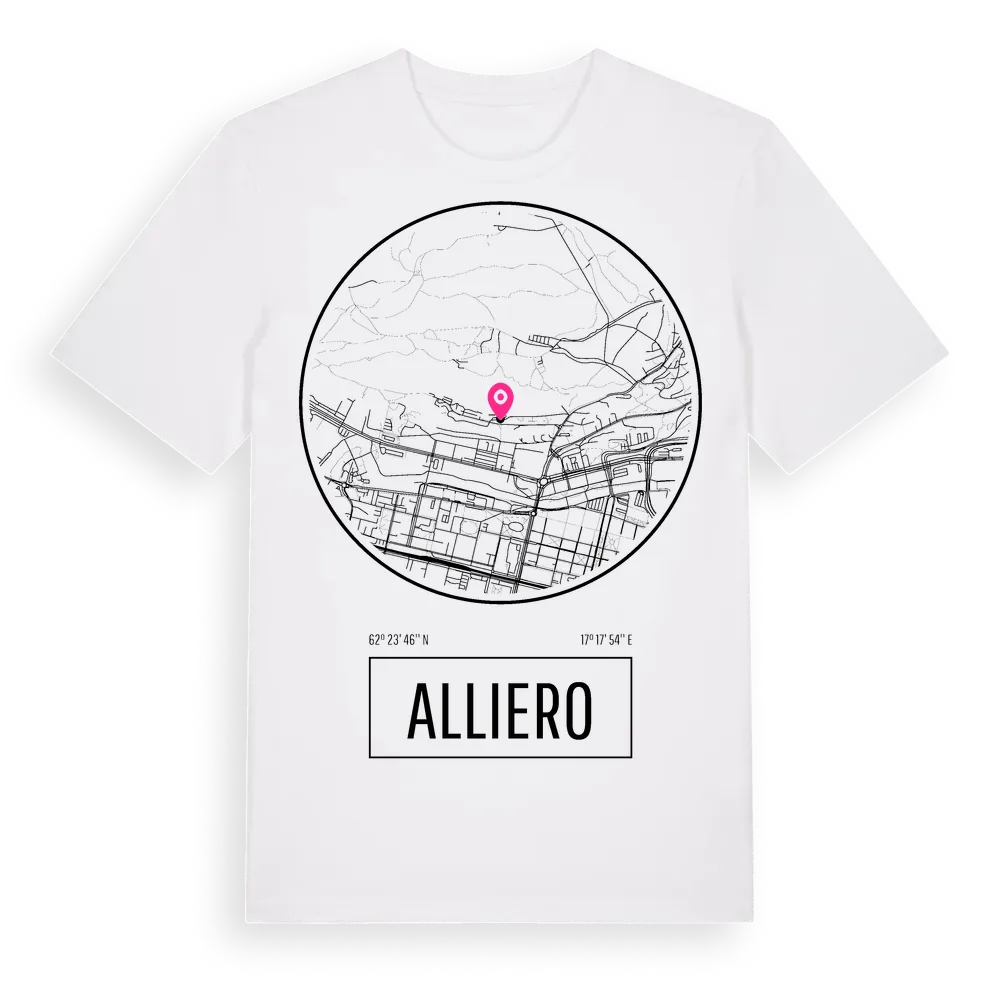 Alliero t-shirt är inspirerad av stadsdelen Alliero i Västernorrlands län, Sverige. Tröjan är designad för dig som har en speciell koppling till platsen – oavsett om du bor här, har rötterna här eller bara älskar Alliero.