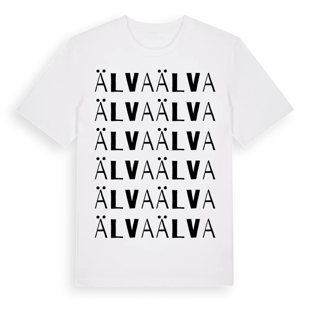 Älva ordlek t-shirt är inspirerad av stadsdelen Älva i Västernorrlands län, Sverige. Tröjan är designad för dig som har en speciell koppling till platsen – oavsett om du bor här, har rötterna här eller bara älskar Älva.