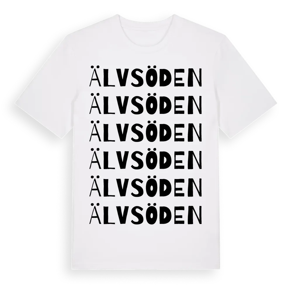 Älvsöden ordlek t-shirt är inspirerad av byn Älvsöden i Västernorrlands län, Sverige. Tröjan är designad för dig som har en speciell koppling till platsen – oavsett om du bor här, har rötterna här eller bara älskar Älvsöden.