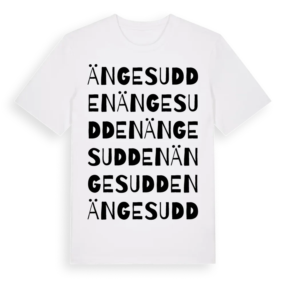 Ängesudden ordlek t-shirt är inspirerad av Ängesudden i Västernorrlands län, Sverige. Tröjan är designad för dig som har en speciell koppling till platsen – oavsett om du bor här, har rötterna här eller bara älskar Ängesudden.