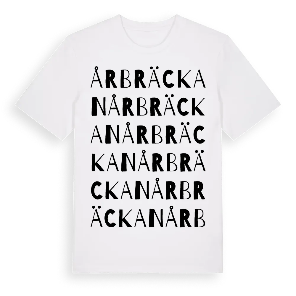 Årbräckan ordlek t-shirt är inspirerad av Årbräckan i Västernorrlands län, Sverige. Tröjan är designad för dig som har en speciell koppling till platsen – oavsett om du bor här, har rötterna här eller bara älskar Årbräckan.