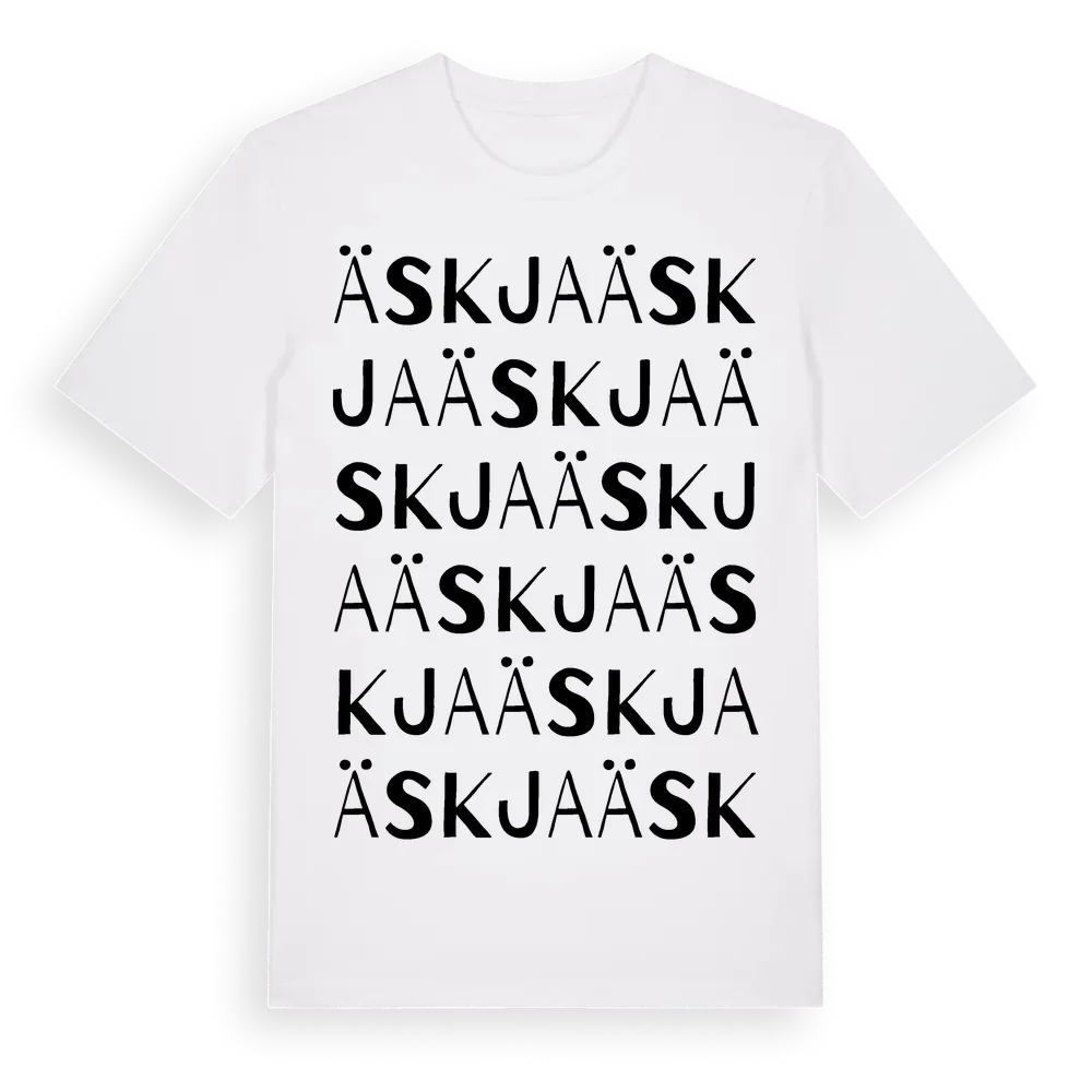 Äskja ordlek t-shirt är inspirerad av byn Äskja i Västernorrlands län, Sverige. Tröjan är designad för dig som har en speciell koppling till platsen – oavsett om du bor här, har rötterna här eller bara älskar Äskja.