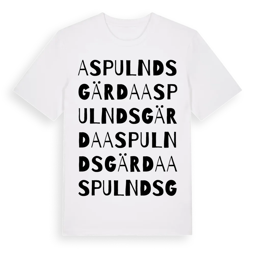 Aspulnds Gärda ordlek t-shirt är inspirerad av Aspulnds Gärda i Västernorrlands län, Sverige. Tröjan är designad för dig som har en speciell koppling till platsen – oavsett om du bor här, har rötterna här eller bara älskar Aspulnds Gärda.