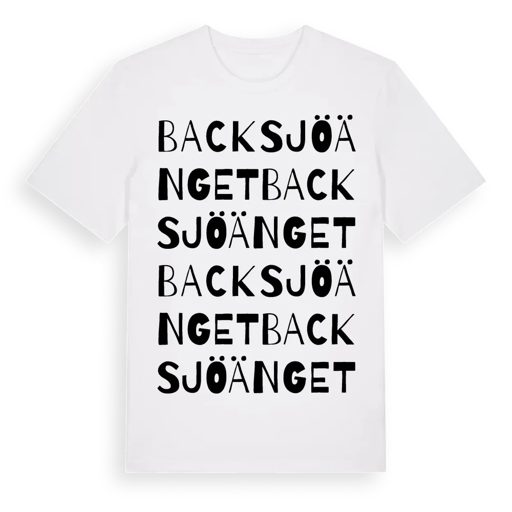 Backsjöänget ordlek t-shirt är inspirerad av byn Backsjöänget i Västernorrlands län, Sverige. Tröjan är designad för dig som har en speciell koppling till platsen – oavsett om du bor här, har rötterna här eller bara älskar Backsjöänget.