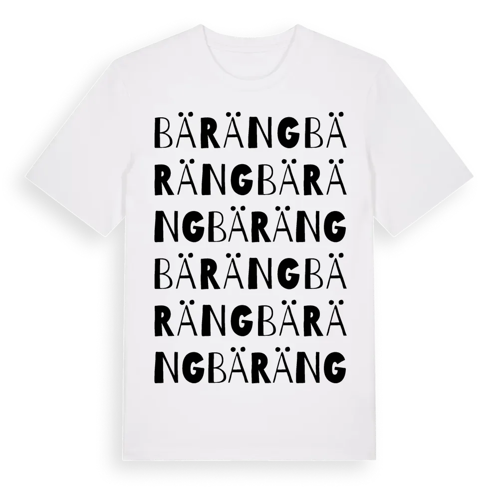 Bäräng ordlek t-shirt är inspirerad av byn Bäräng i Västernorrlands län, Sverige. Tröjan är designad för dig som har en speciell koppling till platsen – oavsett om du bor här, har rötterna här eller bara älskar Bäräng.