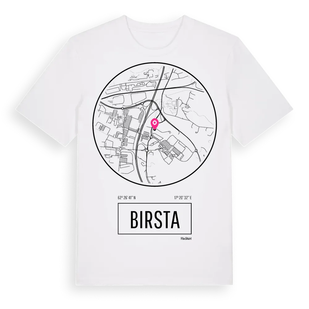 Birsta t-shirt är inspirerad av stadsdelen Birsta i Västernorrlands län, Sverige. Tröjan är designad för dig som har en speciell koppling till platsen – oavsett om du bor här, har rötterna här eller bara älskar Birsta.