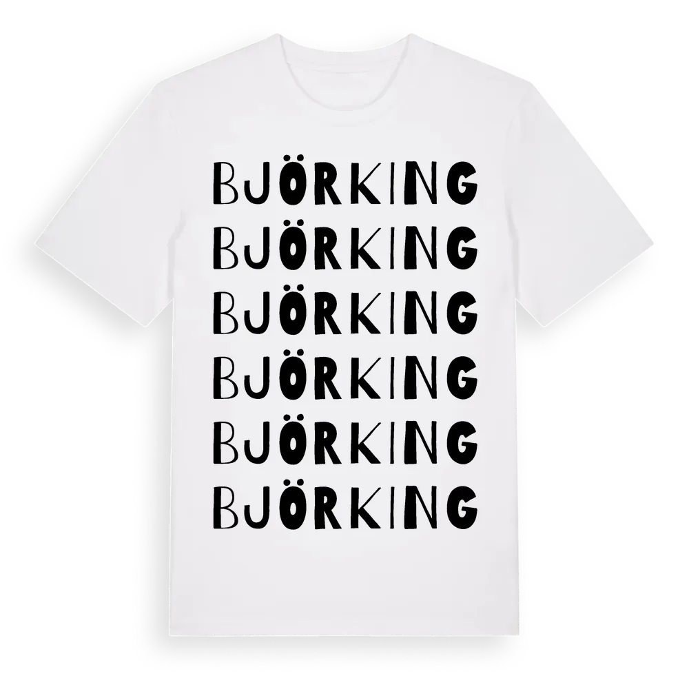 Björking ordlek t-shirt är inspirerad av byn Björking i Västernorrlands län, Sverige. Tröjan är designad för dig som har en speciell koppling till platsen – oavsett om du bor här, har rötterna här eller bara älskar Björking.