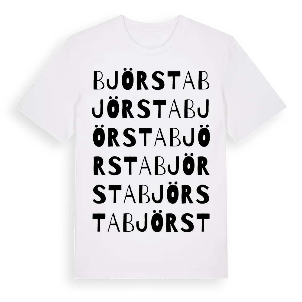 Björsta ordlek t-shirt är inspirerad av stadsdelen Björsta i Västernorrlands län, Sverige. Tröjan är designad för dig som har en speciell koppling till platsen – oavsett om du bor här, har rötterna här eller bara älskar Björsta.