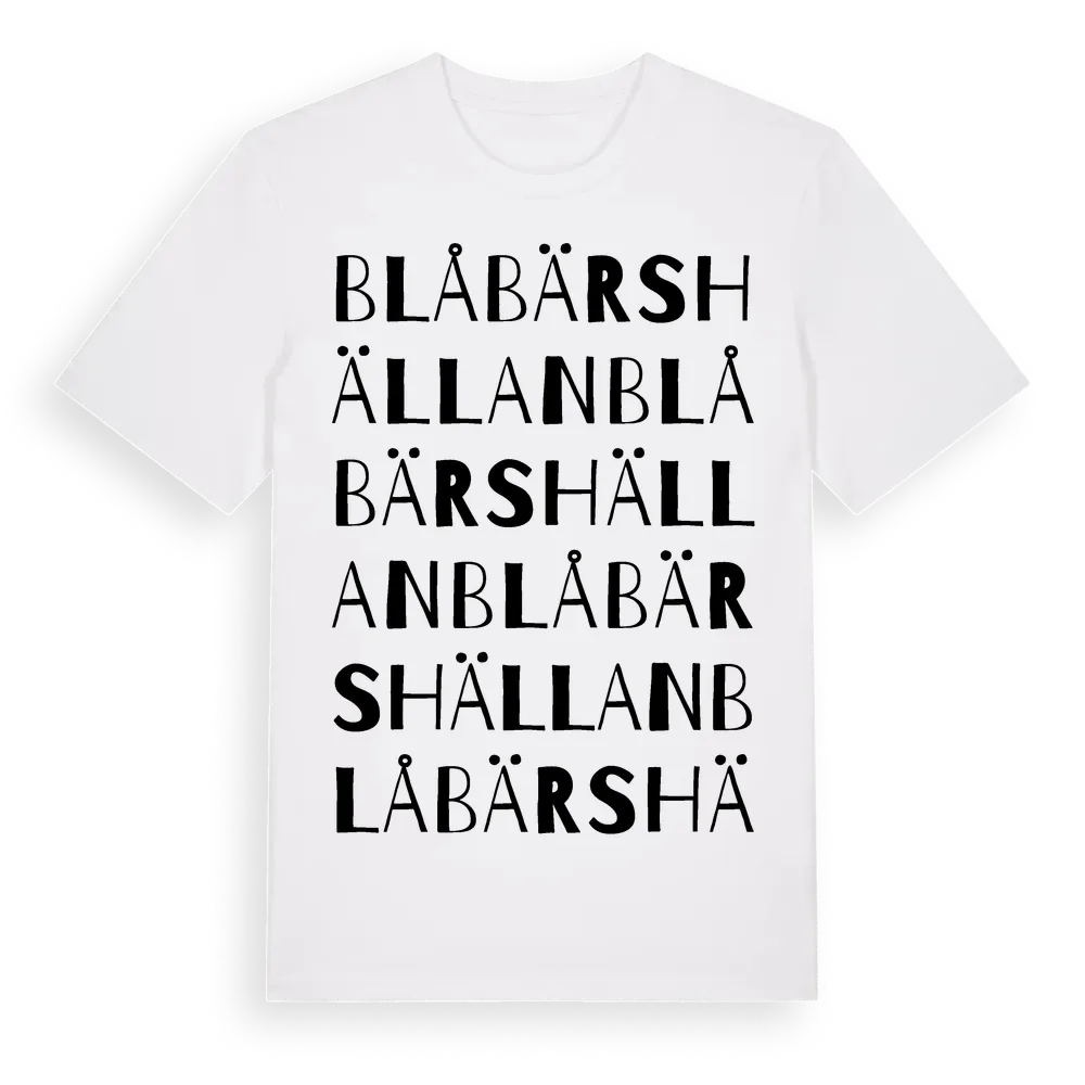 Blåbärshällan ordlek t-shirt är inspirerad av Blåbärshällan i Västernorrlands län, Sverige. Tröjan är designad för dig som har en speciell koppling till platsen – oavsett om du bor här, har rötterna här eller bara älskar Blåbärshällan.