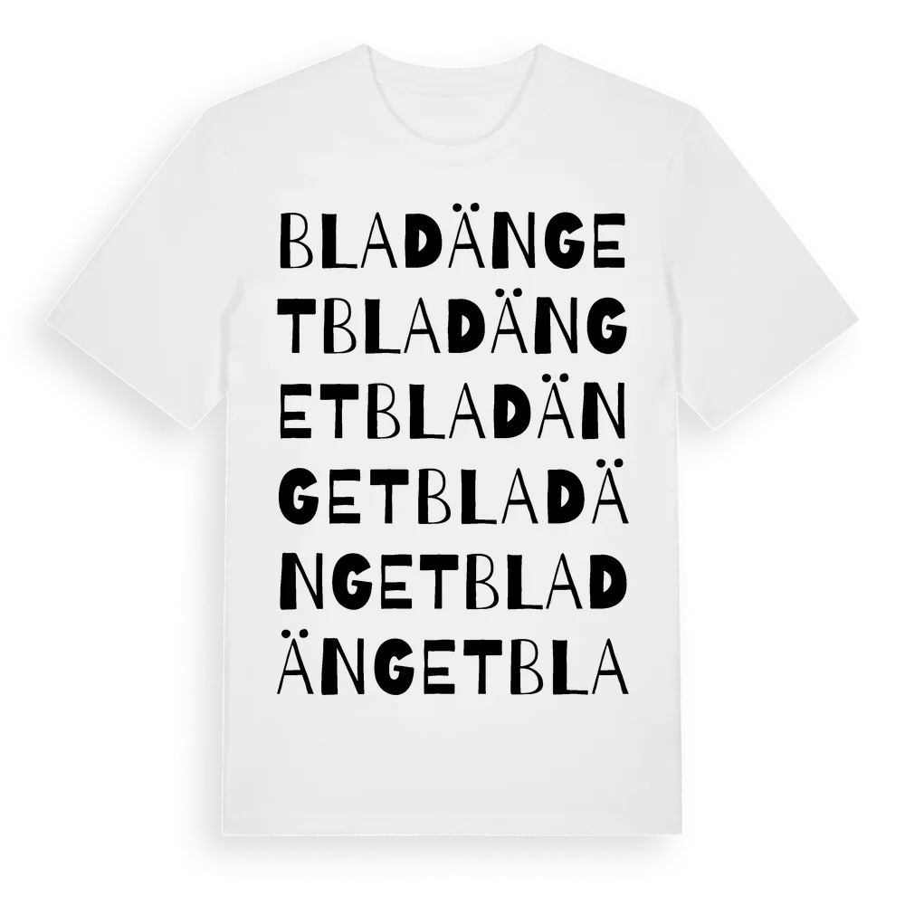 Bladänget ordlek t-shirt är inspirerad av byn Bladänget i Västernorrlands län, Sverige. Tröjan är designad för dig som har en speciell koppling till platsen – oavsett om du bor här, har rötterna här eller bara älskar Bladänget.