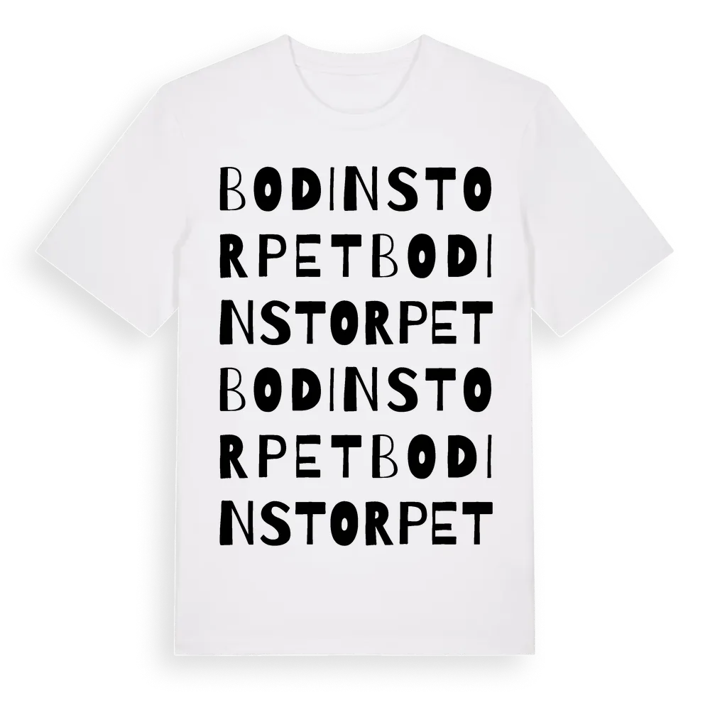 Bodinstorpet ordlek t-shirt är inspirerad av Bodinstorpet i Västernorrlands län, Sverige. Tröjan är designad för dig som har en speciell koppling till platsen – oavsett om du bor här, har rötterna här eller bara älskar Bodinstorpet.
