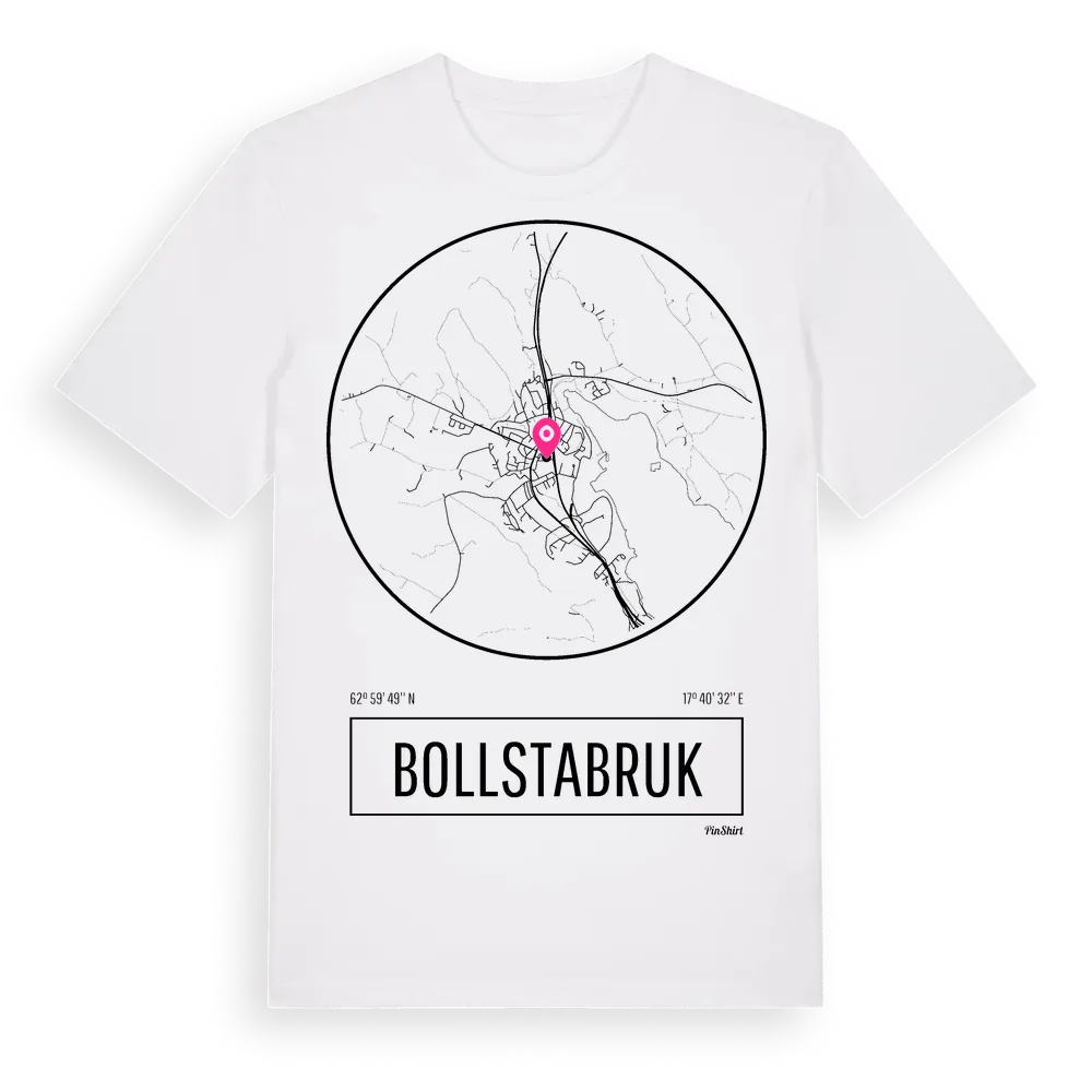 Bollstabruk t-shirt är inspirerad av byn Bollstabruk i Västernorrlands län, Sverige. Tröjan är designad för dig som har en speciell koppling till platsen – oavsett om du bor här, har rötterna här eller bara älskar Bollstabruk.