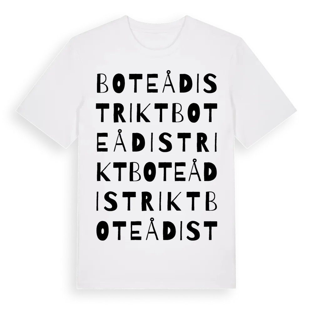 Boteå Distrikt ordlek t-shirt är inspirerad av Boteå Distrikt i Västernorrlands län, Sverige. Tröjan är designad för dig som har en speciell koppling till platsen – oavsett om du bor här, har rötterna här eller bara älskar Boteå Distrikt.