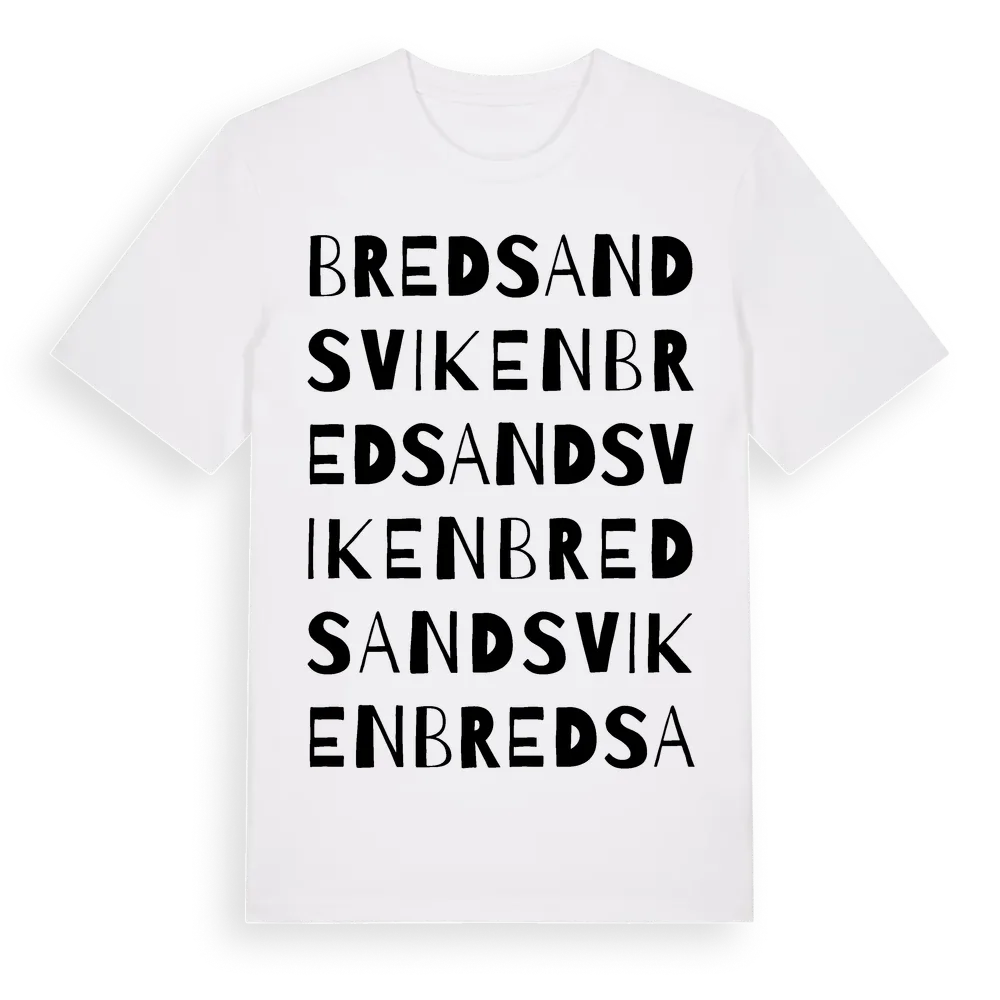 Bredsandsviken ordlek t-shirt är inspirerad av byn Bredsandsviken i Västernorrlands län, Sverige. Tröjan är designad för dig som har en speciell koppling till platsen – oavsett om du bor här, har rötterna här eller bara älskar Bredsandsviken.