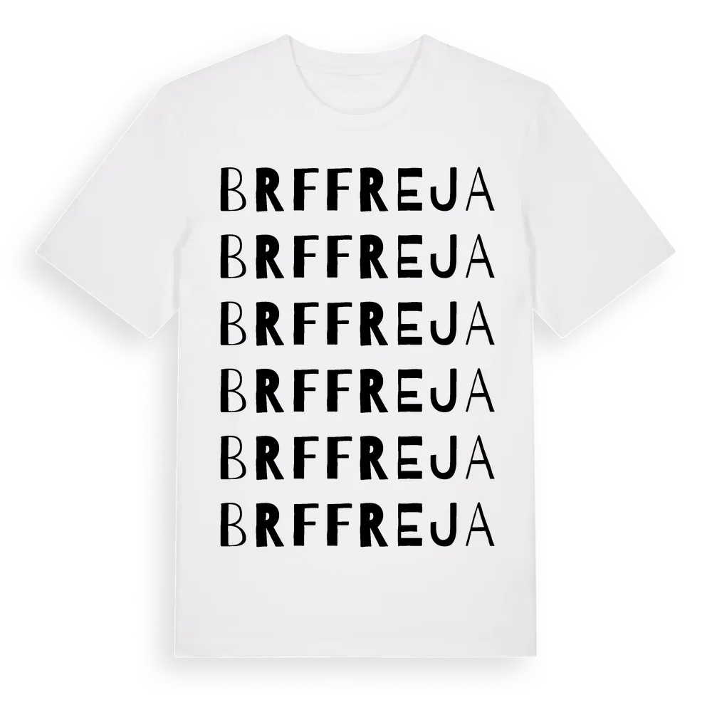 Brf Freja ordlek t-shirt är inspirerad av stadsdelen Brf Freja i Västernorrlands län, Sverige. Tröjan är designad för dig som har en speciell koppling till platsen – oavsett om du bor här, har rötterna här eller bara älskar Brf Freja.