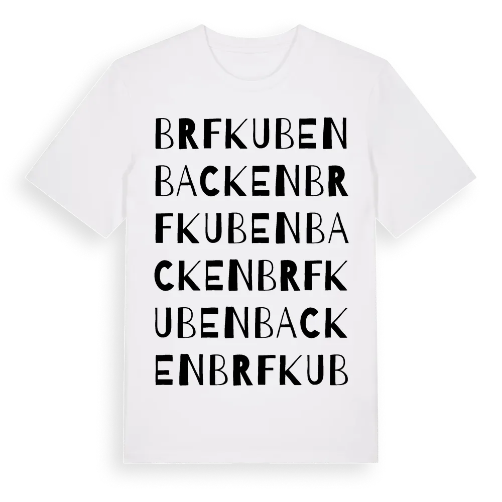 Brf Kubenbacken ordlek t-shirt är inspirerad av stadsdelen Brf Kubenbacken i Västernorrlands län, Sverige. Tröjan är designad för dig som har en speciell koppling till platsen – oavsett om du bor här, har rötterna här eller bara älskar Brf Kubenbacken.